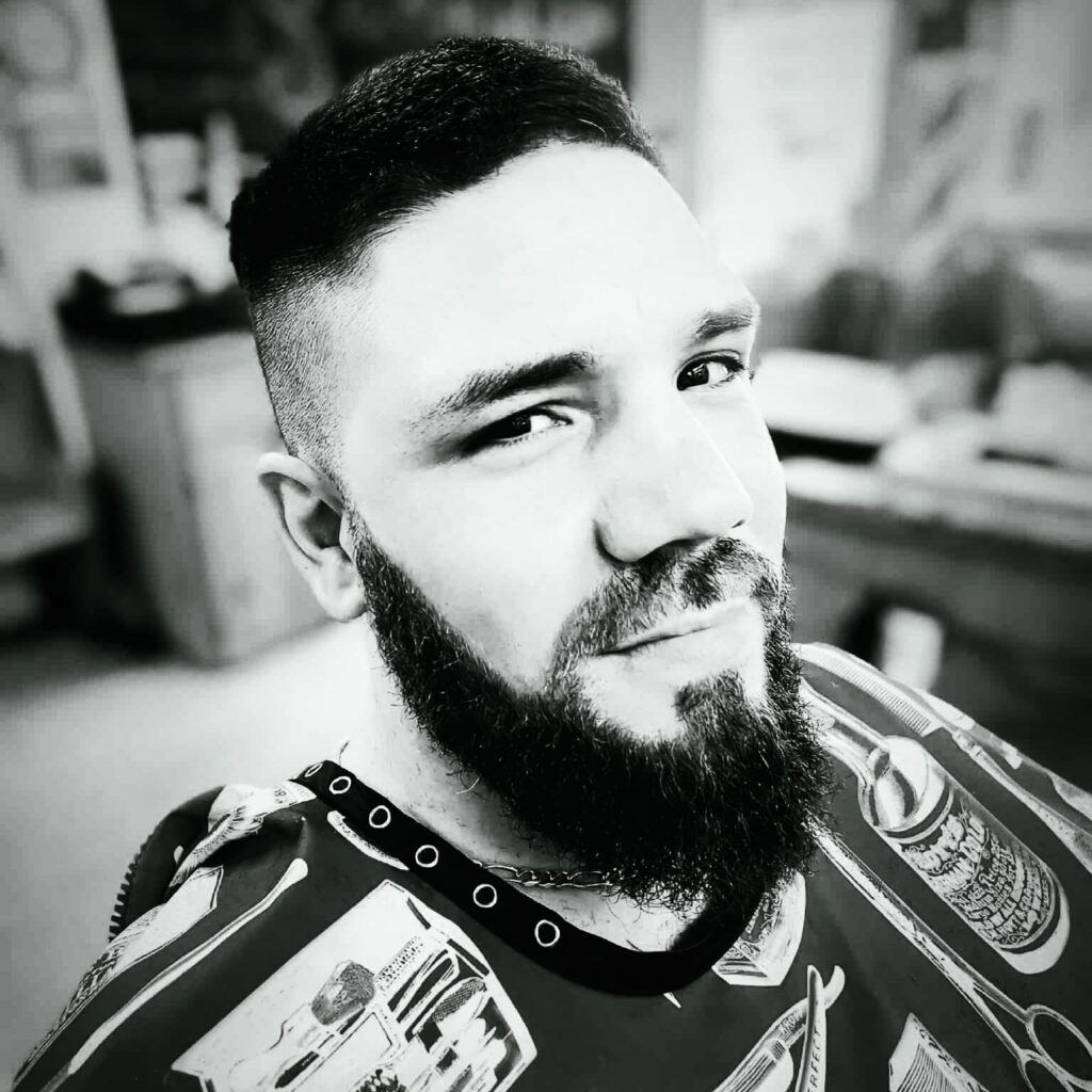 Coupe précise à la tondeuse, entretien net de la tête et de la barbe, pour un style soigné et masculin.